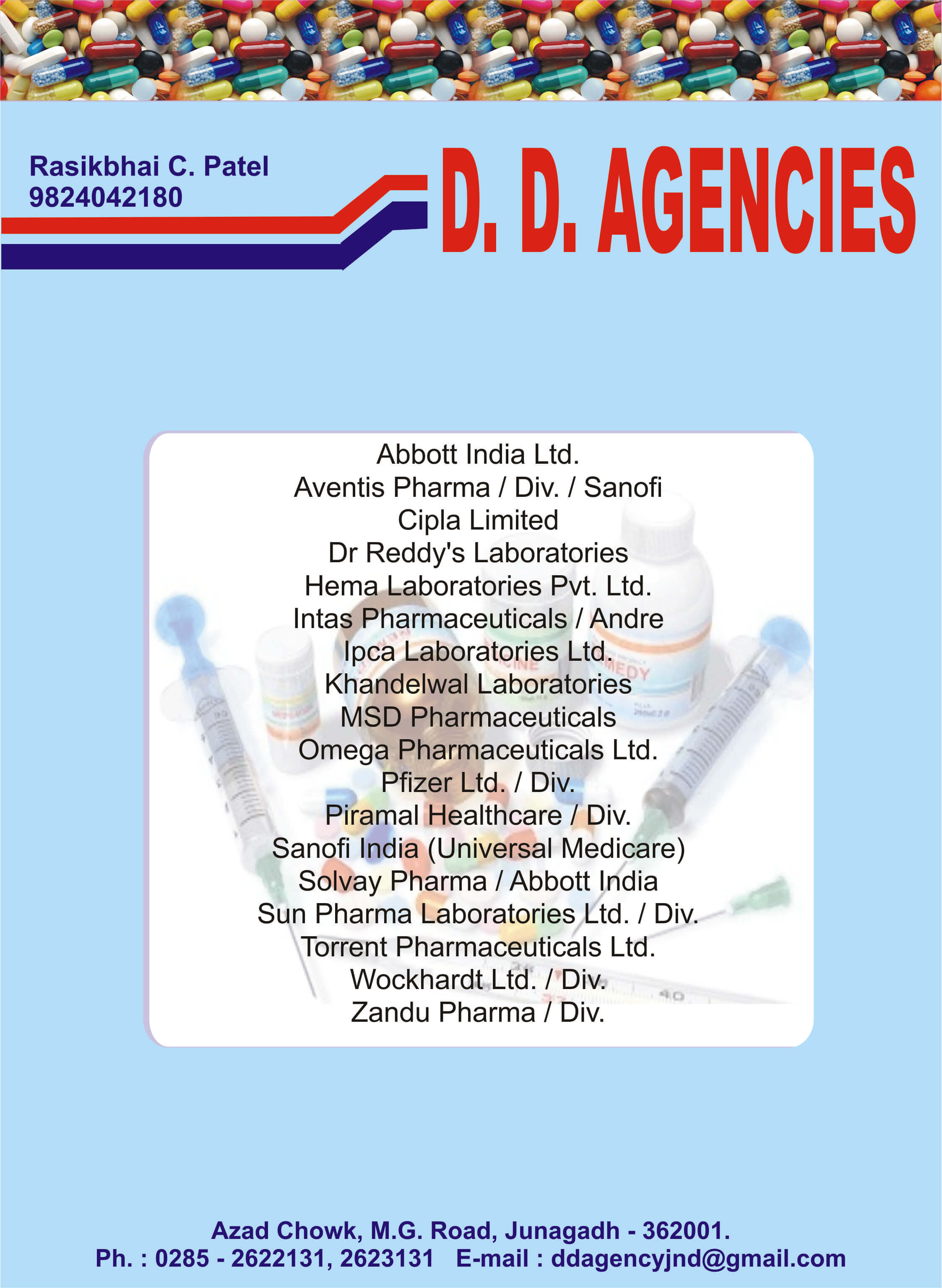 D.D.Agencies provides you the best range of pharmaceutical injection, surgical instruments, medical equipment, healthcare services, ecg machine & empty capsules with effective & timely delivery.