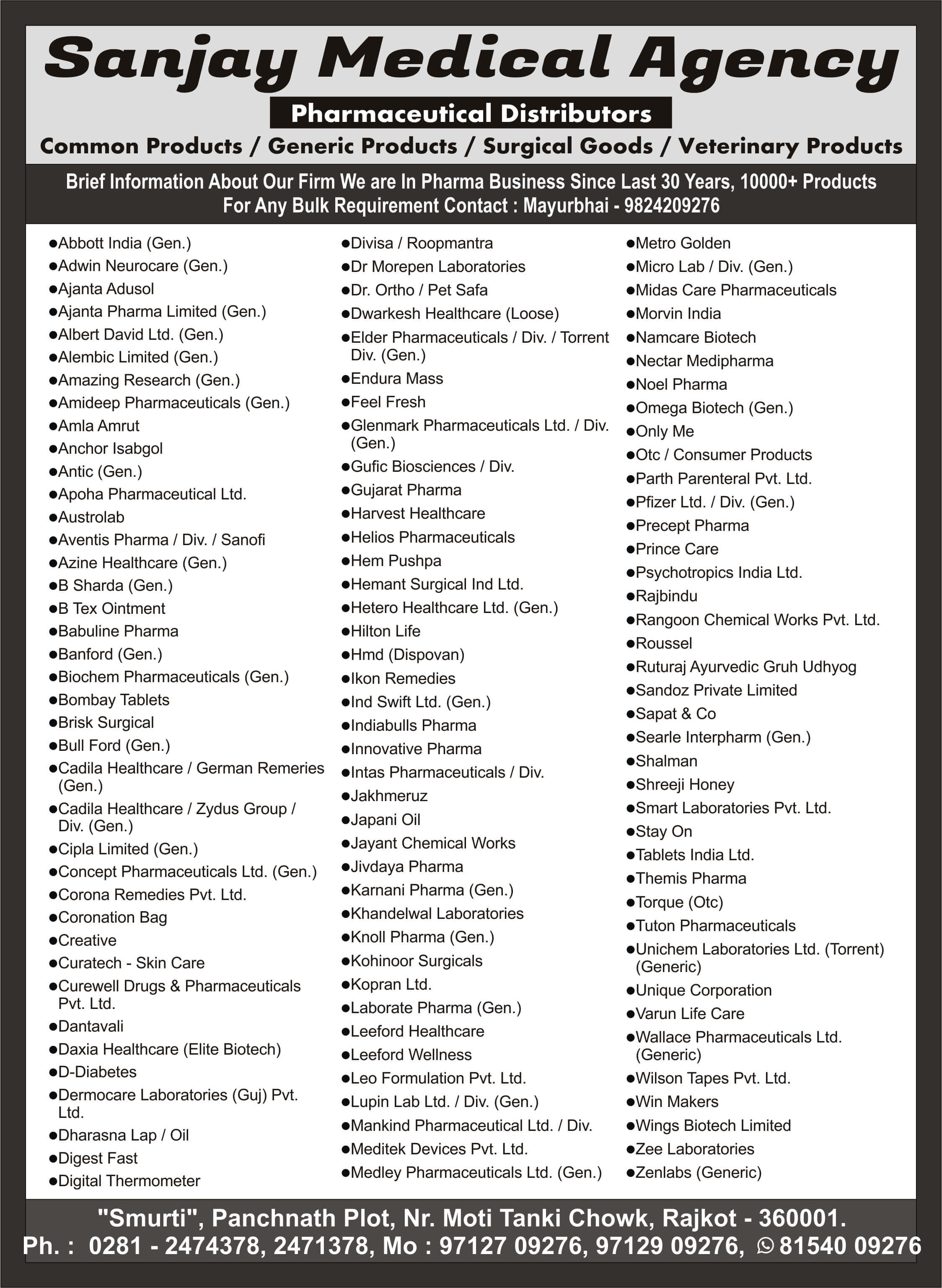 Pharmaceutical products wholesaler in Rajkot, Gujarat
